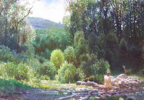 Como un artista que vive en Canadá, Yang tiene la libertad artística para expresarse. Él puede elegir hacer la crónica de las personas y lugares de la historia china como se representa en la pintura, La muerte de la concubina de perlas. Las pinturas de esta exposición, el objetivo de captar la pura dulzura y la belleza de un momento en el tiempo, como la serenidad retratado en Hermanas en la Luna de Plata.